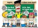 - anak2: SAYA!!! serempak suara anak2 smbil mengacungkn tangan, tapi ada seorang anak yang ga ikut menjawab dan mengacungkan tangan. dan guru pun bertanya kepada anak tersebut. sebut aja anak itu namanya bagiyo.